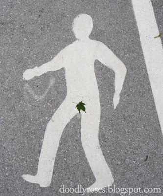 In Salzburg the paths are divided into lanes for pedestrians and bicyclists, and are marked with painted symbols to tell you which one is which. Today on my way to my piano lesson I spotted one very modest walking-man-symbol.