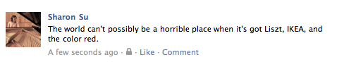 A few seconds ago, I posted this as my Facebook status: